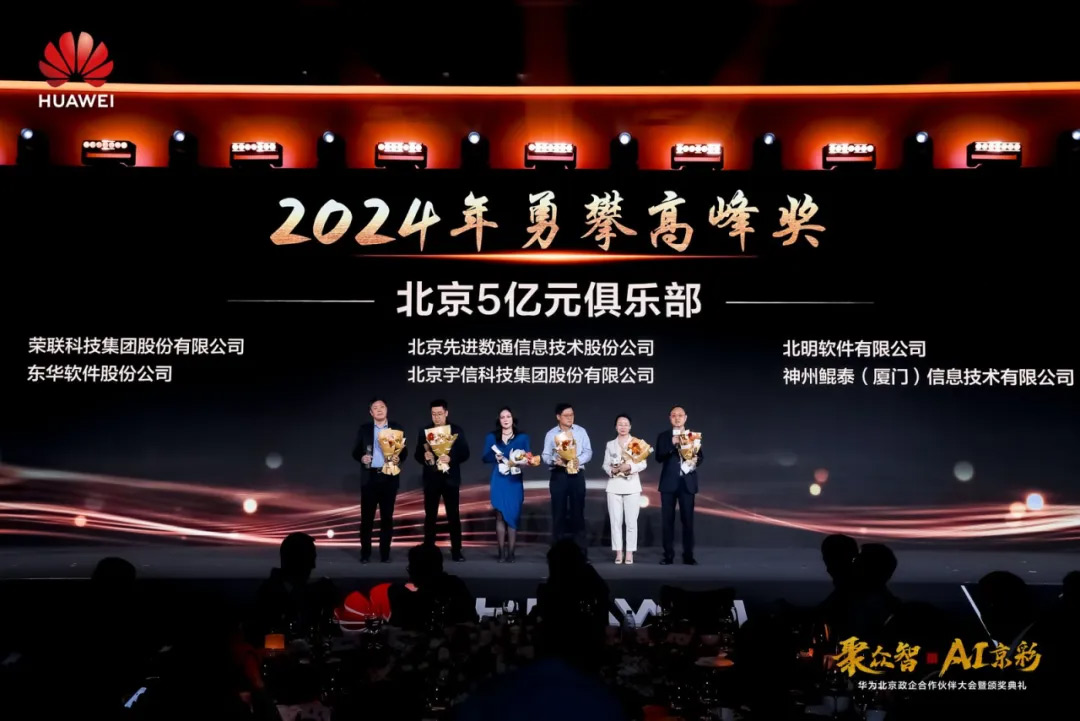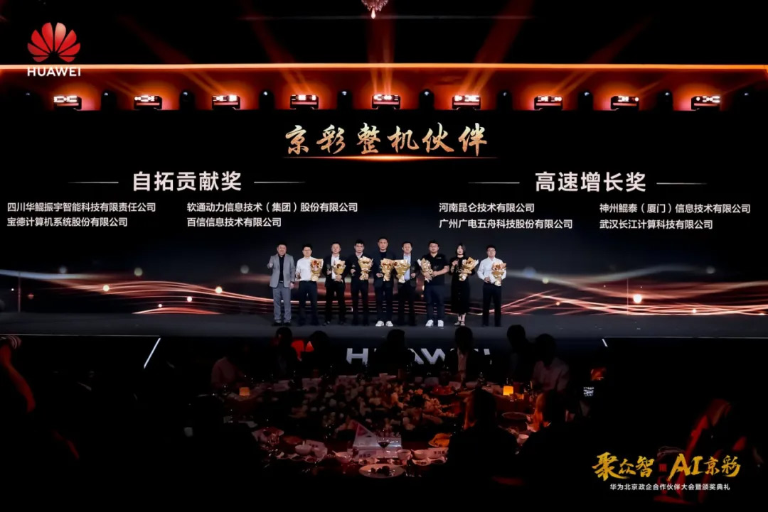 2025年4月18日,2025华为北京政企合作伙伴年度盛典在京隆重举行。大会重点探讨人工智能技术突破与产业生态构建,并对2024年度助力北京政企数字化升级的优秀伙伴进行表彰。作为华为核心合作伙伴,神州以持续的技术创新能力和突出的市场表现,成功跻身"北京区域五亿级合作阵营",并凭借年度业务增速优势摘得"京彩整机高速增长奖"称号。活动同期,神州参与华为北京政企2025年整机伙伴BP签署计划,进一步深化战略协同,共绘数智化新蓝图。