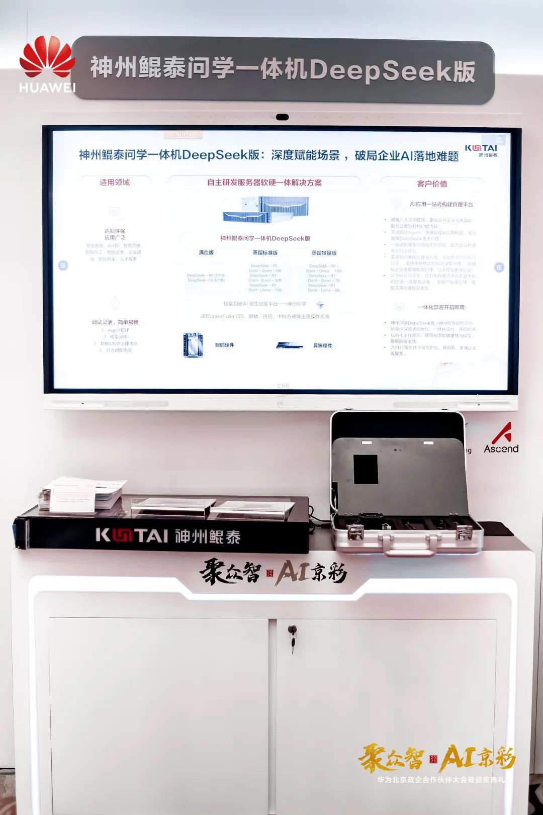 神州作为首批加入华为“鲲鹏”+“昇腾”计算产业生态建设的伙伴,神州依托全栈技术布局打造多元化产品矩阵。其创新研发的用计算、智能计算、边缘计算、液冷整机柜等丰富多样的产品形态,已成功服务政务、交通、能源等领域的复杂场景需求。本次重点展示的"神州问学一体机DeepSeek版",通过私有化部署、企业级模型增强、场景化应用赋能三位一体架构,破解AI落地"成本高、部署难、见效慢"三大困局,助力政企客户实现大模型应用的快速价值转化。