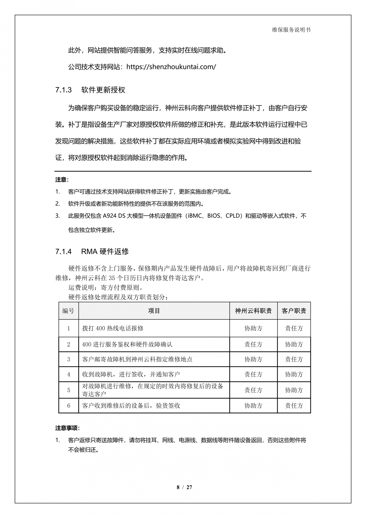 神州A924 问学大模型一体机维保服务说明书_V1.0