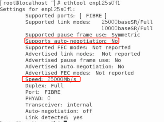 1.在系统中执行ethtool命令查看,发现网卡当前速率依旧是25GE