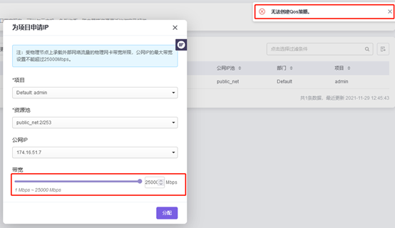 2.客户平台创建25GE失败,实际速率应该只有10GE: