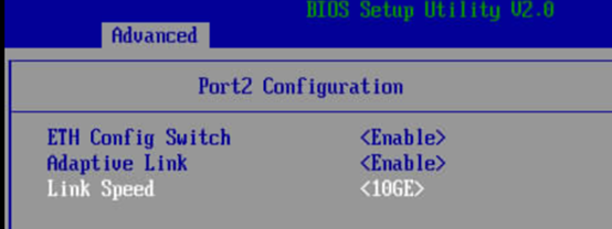 2、进入BIOS查看网卡配置,将自适应打开,速率设置为10GE,进入OS后,发现依旧没变化,还是25GE。
