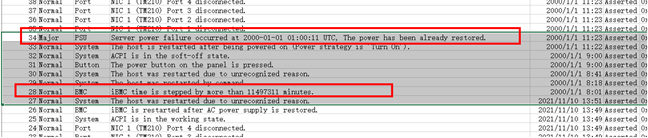 BMC日志显示11月份有出现整机的AC掉电,AC掉电恢复后,BMC的时间发生了跳变