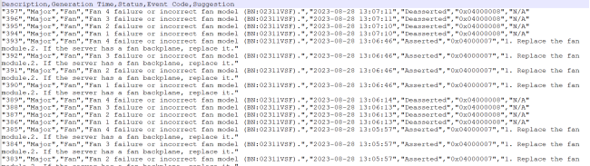 2. 查看sel日志记录,发现大量风扇错误又恢复告警。