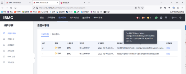 S920X10主板,开启不安全协议和算法后,会产生轻微告警