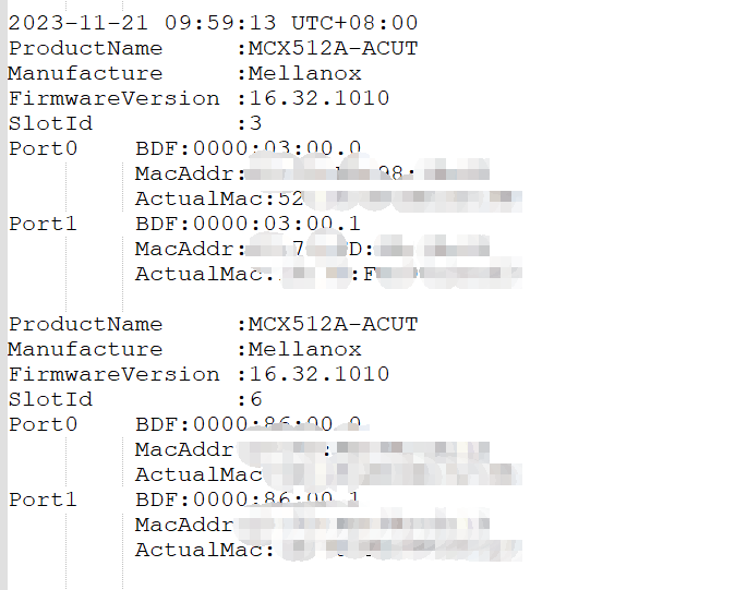 4. 查看netcard_info对应故障时间日志打印,网卡可以正常识别固件信息、所在槽位与mac地址等基本参数