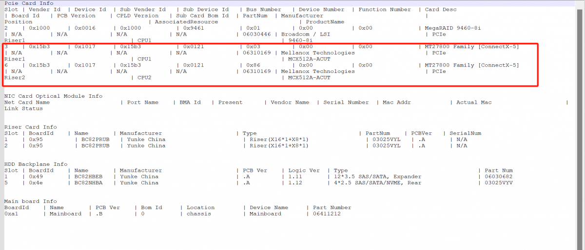 3. 查看card_info日志,发现涉及的PCIE Card 3/6网卡,槽位信息与设备信息识别正常。