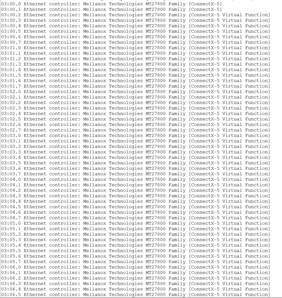 7. 进一步了解现场情况,对比发现仅配置了VF环境偶发此类问题,现场系统配置64个VF,VF(Virtual Function)是建立在PCIe PF(Physical Function)设备上的PCIe设备,相当于在一个PCIe接口上分裂出多个PCIe接口,64个VF对PCIe总线负载增加64倍,消息传输量增加,超出CPU Root Complex能力,会增加发生AER报错的几率和CTO的发生(CTO的发生在现有固件版本上会被误报为Malformed TLP AER),详情请见附录5.3。