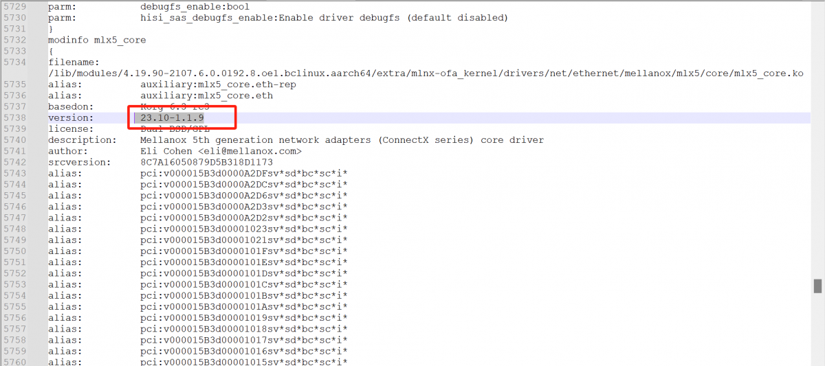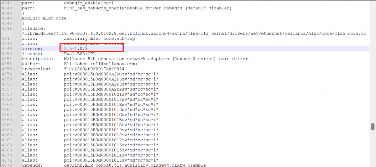 5. 进一步分析,发现现场反馈的正常机器与异常机器之间的当前系统下网卡驱动版本存在差异,我司当前系统下网卡驱动版本为5.5-1.0.3。