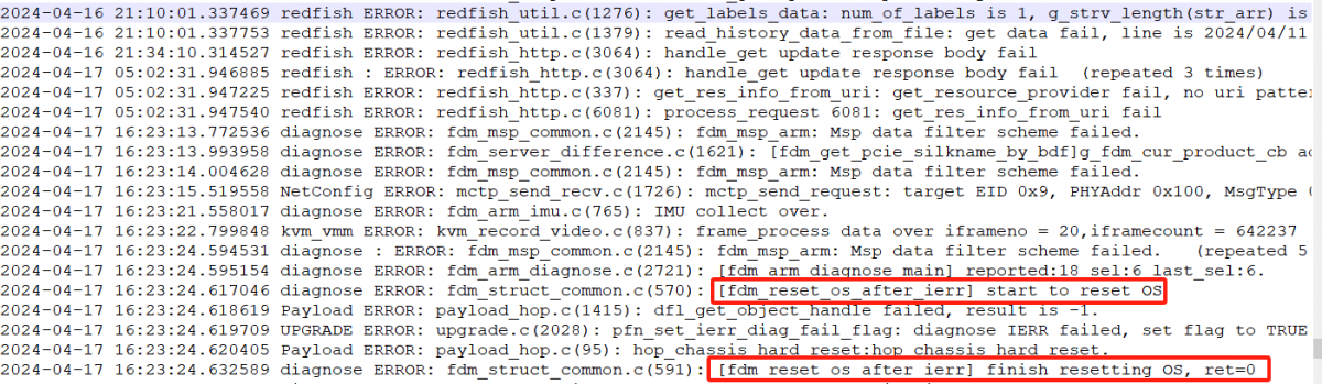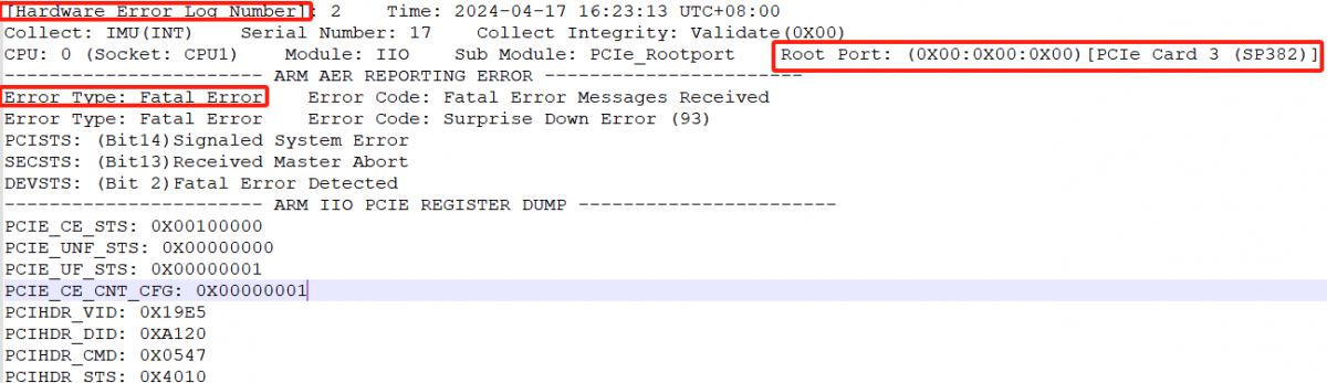 1.查看日志logdump目录下fdmlog文件,发现日志中有Hardware Error Log Number记录,同时错误类型为:fatal Error,如下图: