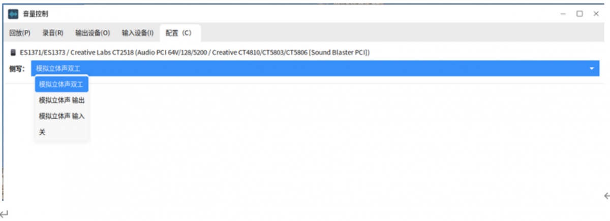 打开pavucontrol,切换到“配置”选项卡,根据实际情况禁用不需要的声卡。(以下是用虚拟机举例)